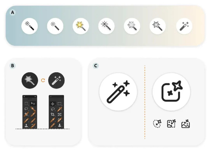 结果魔棒差点被“淹没”在AI符号堆里,你想啊,满屏都是带闪光的图标,用户哪分得清哪个是魔棒?