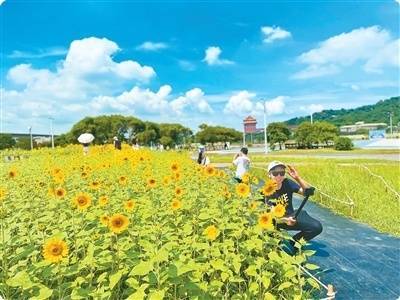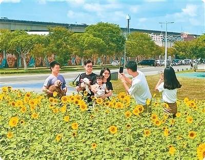 近日,台北市大佳河滨公园的10多万株向日葵进入盛开期,吸引不少市民和游客前来观赏打卡。